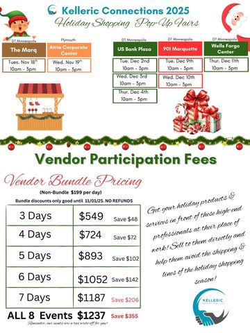 For our Free Network Event Attendees: we will be offering a $15 off per event discount if you pay at the door for the next 2 Kelleric events Baker Center April 30th & Mothers Day Flower Festival May 7.